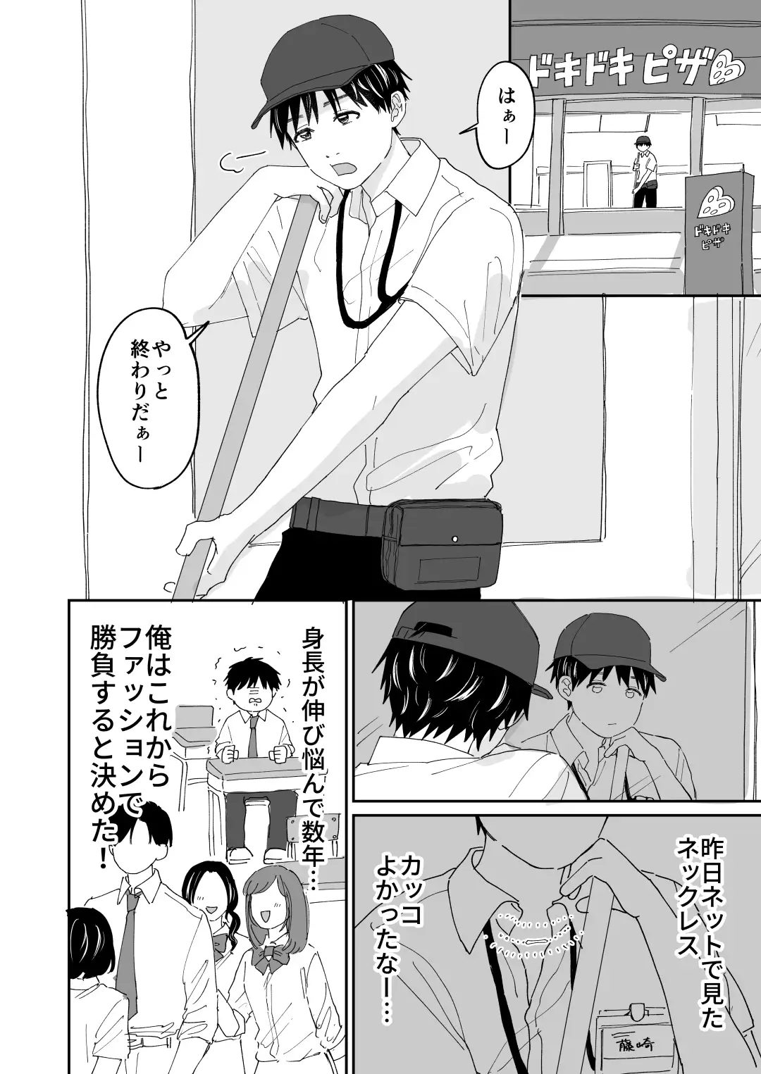 ピザの配達のバイトをしている藤崎くん。